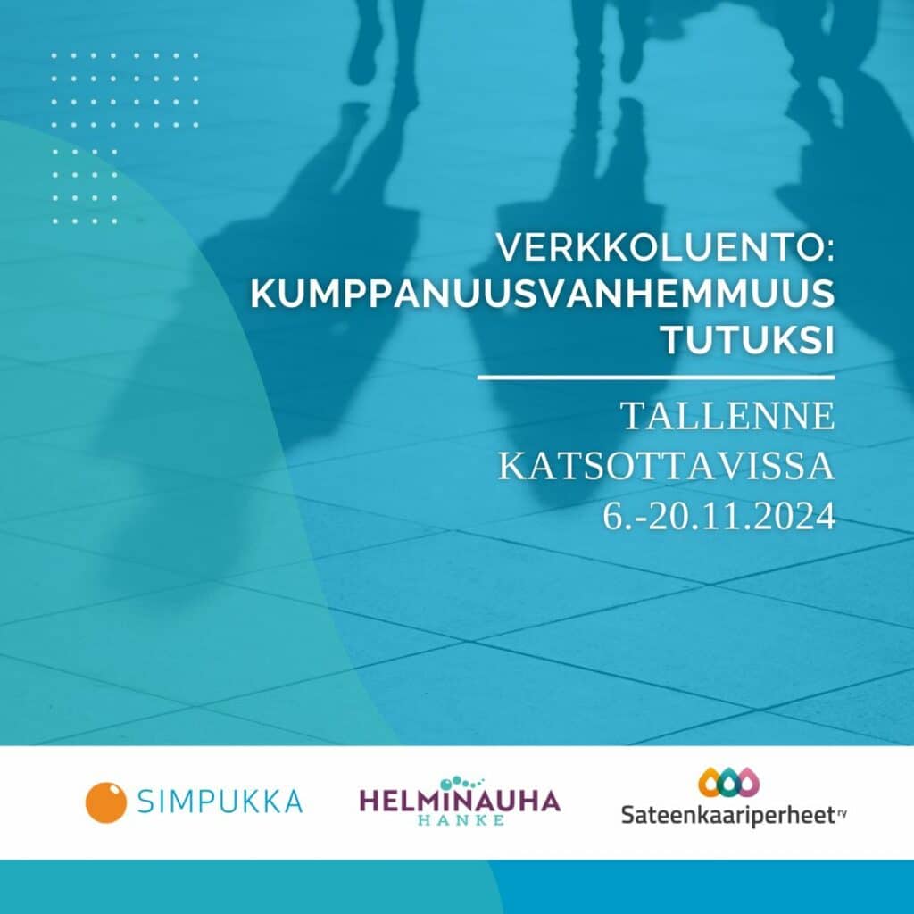 Ajankohta: Tiistaina 5.11. 2024 klo 18-19.15Paikka: Verkossa, Zoom-alustalla Luennolla kerrotaan kumppanuusvanhemmuudesta lapsiperheellistymisen tapana. Luennolla tarjotaan…