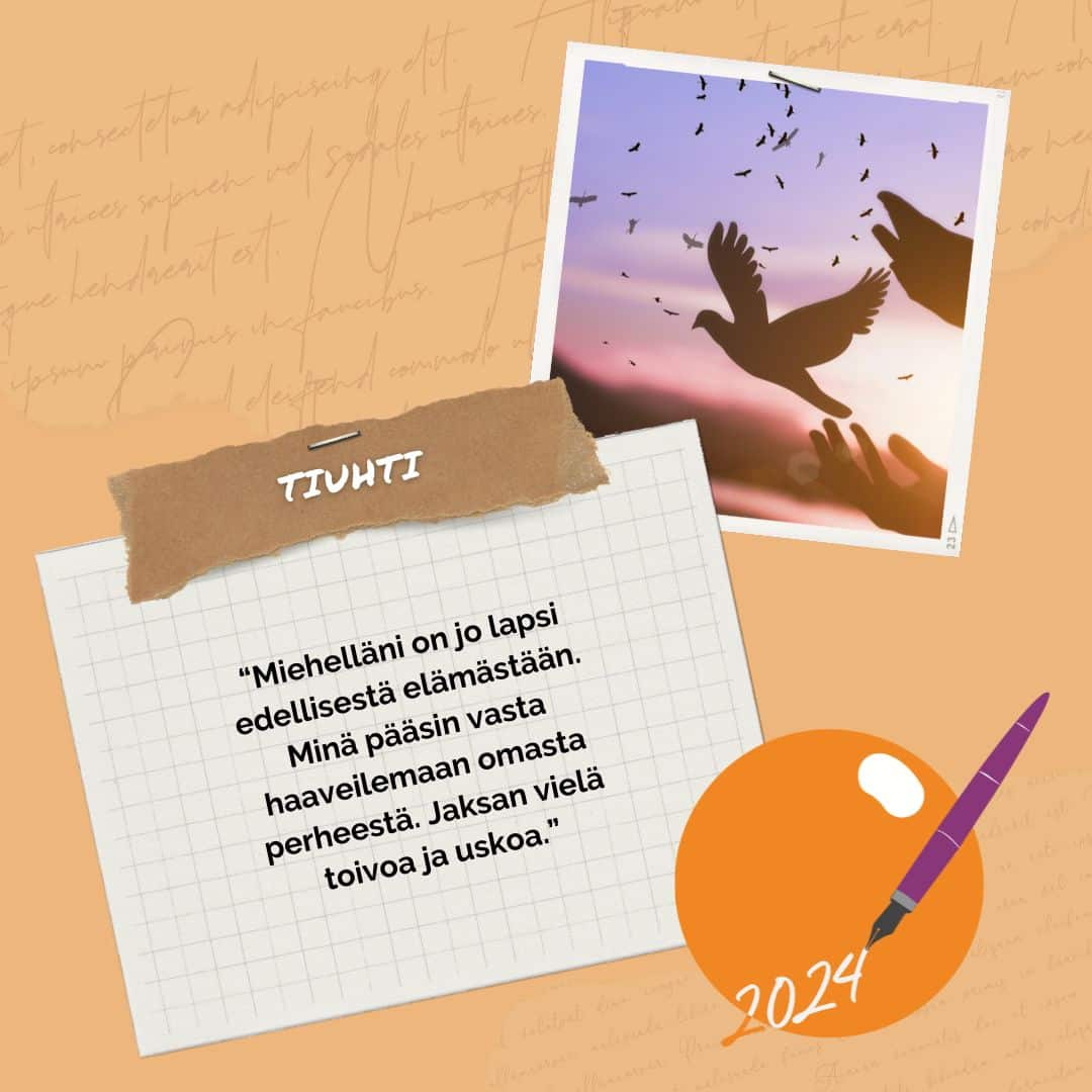 Vihdoin olen naimisissa ja olemme yrittäneet lasta pari vuotta. Miehelläni on jo lapsi edellisestä elämästään. Minä pääsin vasta haaveilemaan omasta perheestä. Jaksan vielä toivoa ja uskoa.