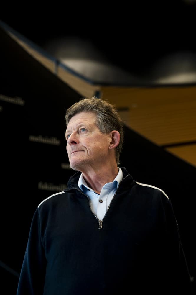 Eero Varila kuvattuna Oodi-kirjastossa Simpukka-lehdelle. Kuva Eeva-Maria Brotherus.