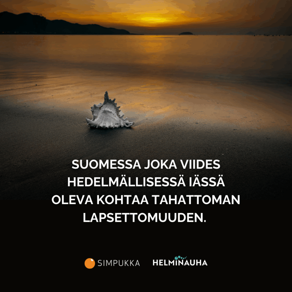 Lapsettomien lauantai muistuttaa, että vanhemmuus ei ole itsestään selvää. Tahaton lapsettomuus on yleistä: Suomessa yksi viidestä hedelmällisessä iässä olevista kohtaa tahattoman lapsettomuuden. Kyseessä on yksi aikuisiän suurimmista kriiseistä. Kokemuksesta selviytymiseen tarvitaan oikea-aikaista ja saavutettavaa tietoa ja tukea. Erityisesti vertaistuen merkitys on tärkeä. Simpukka ry toivoo, että kukaan tahatonta lapsettomuutta kokeva ei jäisi yksin.