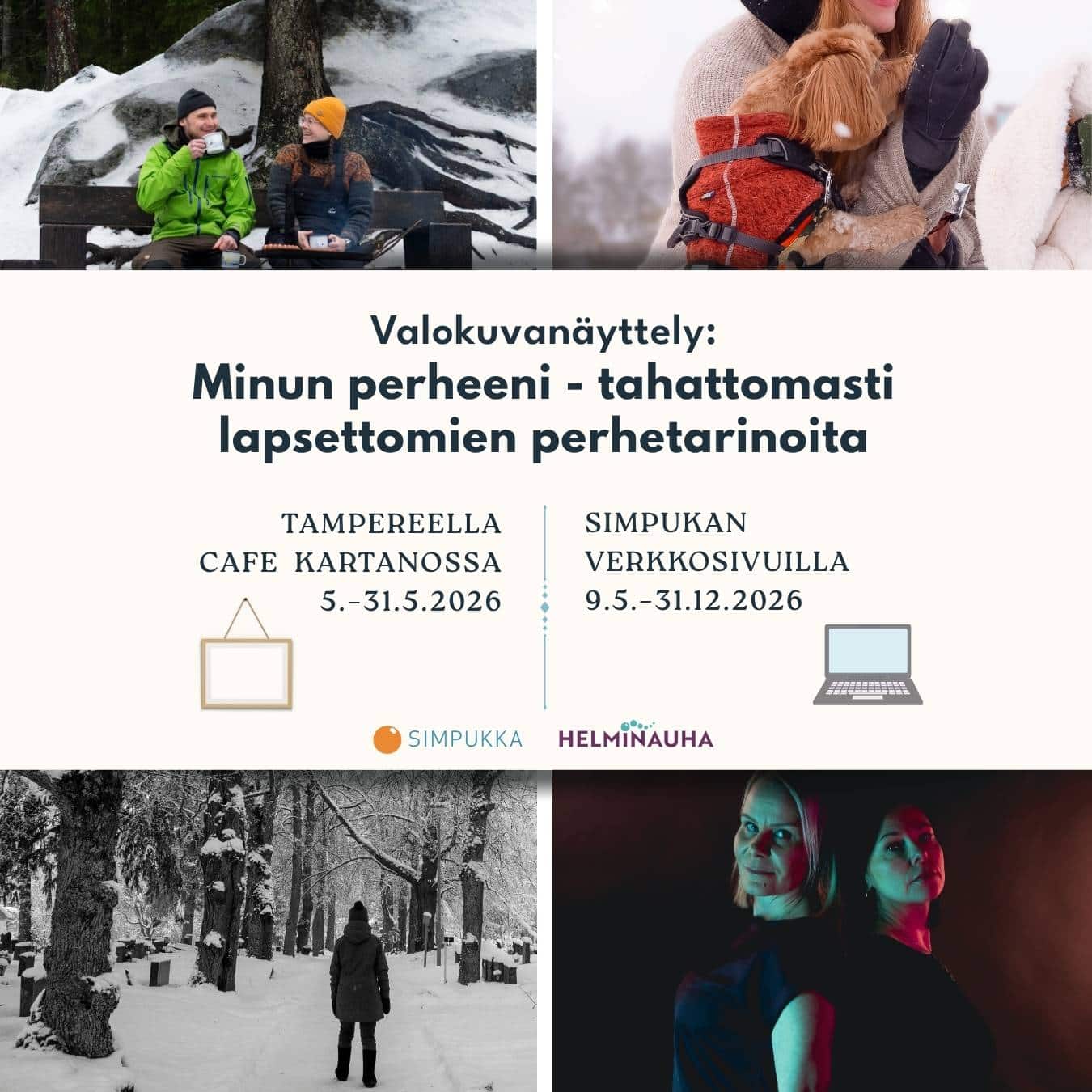 Lapsettomien yhdistys Simpukka ry:n Minun perheeni – tahattomasti lapsettomien perhetarinoita -valokuvanäyttely esittelee tahattoman lapsettomuuden vaikutuksia perheisiin. Lähes 20 tahattoman lapsettomuuden kokenutta henkilöä kertoo kuvansa ja tarinansa avulla, keitä heidän perheisiinsä kuuluu juuri nyt.