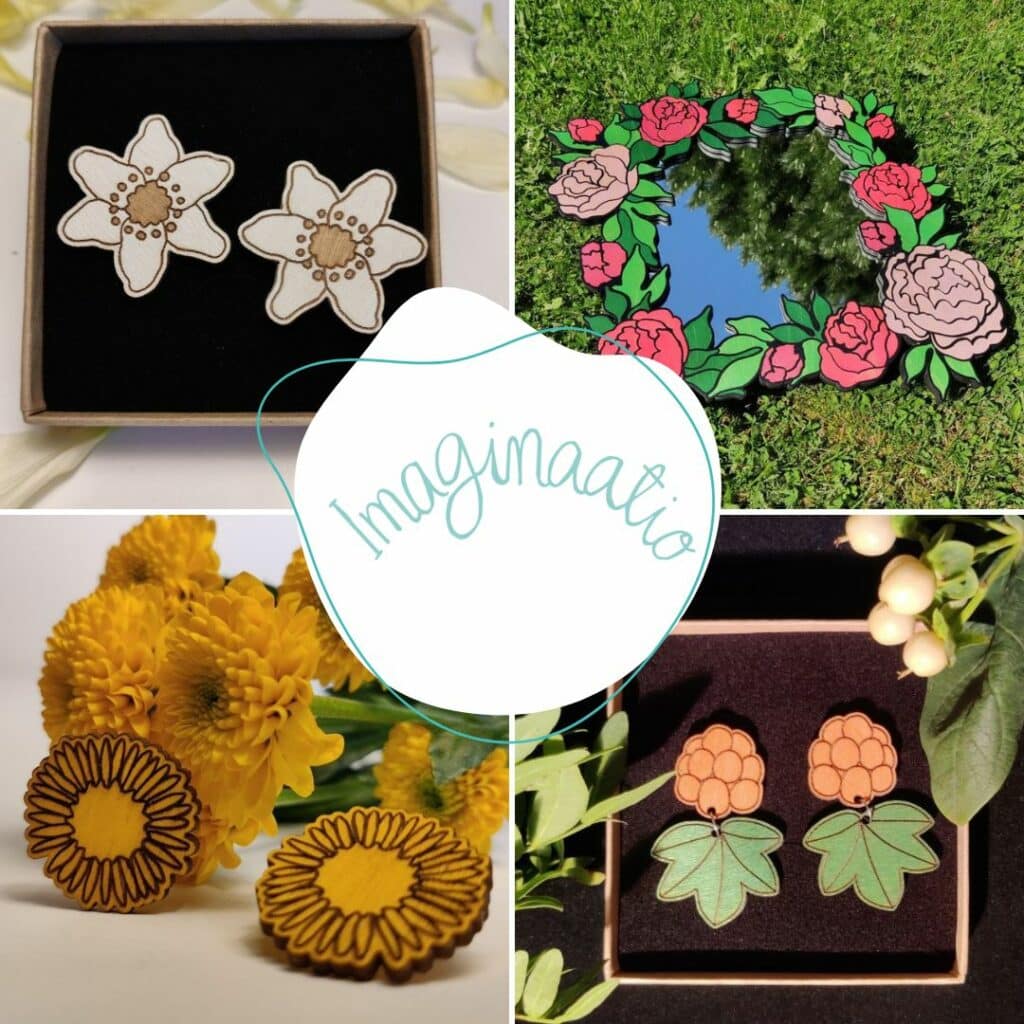 Alennus 15 % verkkokaupasta imaginaatio.fi. Imaginaatio on muotoilija Satu Urvikon suunnittelema koru- ja sisustustuotemallisto. Tuotteet ovat saaneet inspiraatiota luonnon yksityiskohtien kauneudesta. Esimerkiksi korvakorujen teemoina näkyvät ympäristöstään erottuvat kukat, kuten valkovuokot ja leskenlehdet sekä marjat, kuten mustikat ja pihlajat.