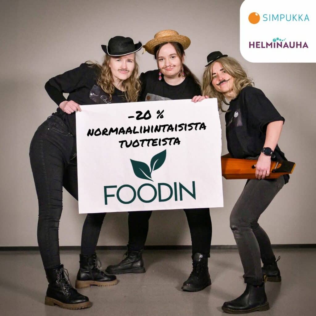 Kotimainen perheyritys Foodin tarjoaa Simpukan jäsenille 20 % alennuksen normaalihintaisista tuotteista. Hyödynnä etu foodin.fi-verkkokaupassa. Koodin löydät jäsenten sivulta.