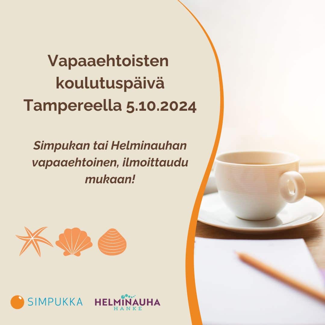 Simpukan vapaaehtoinen: Tervetuloa koulutuspäivään Tampereelle 5.10.2024