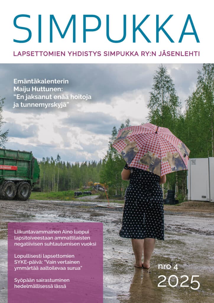 Tilaa lehti itsellesi liittymällä Simpukan jäseneksi. Simpukan jäsenenä saat neljä kertaa vuodessa ilmestyvän Simpukka-lehden sekä tuet tahattomasti lapsettomien hyvinvoinnin ja tahattoman lapsettomuuden tietoisuuden hyväksi tehtävää työtä. Jäsenmaksu on vuodessa yksin liittyvältä 30 €, parilta 35 € ja koko perheeltä 40 €. Lue lisää täältä: Liity Simpukan jäseneksi.