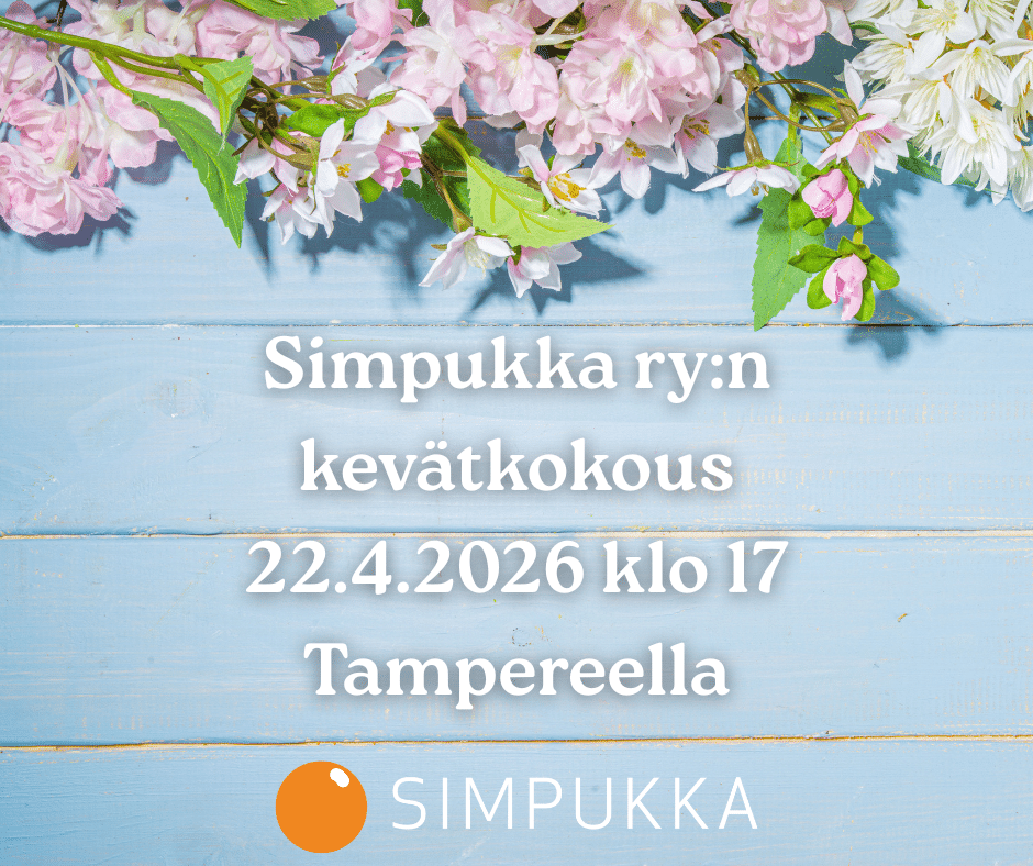 Simpukan sääntömääräinen kevätkokous järjestetään ke 22.4.2026, johon kaikki yhdistyksemme jäsenet ovat tervetulleita. Kahvitus alkaa kello 16.30. Kokous pidetään Simpukan toimistolla osoitteessa Tampellan Esplanadi 8 B LH 35, Tampere. Kokous alkaa kello 17.00.