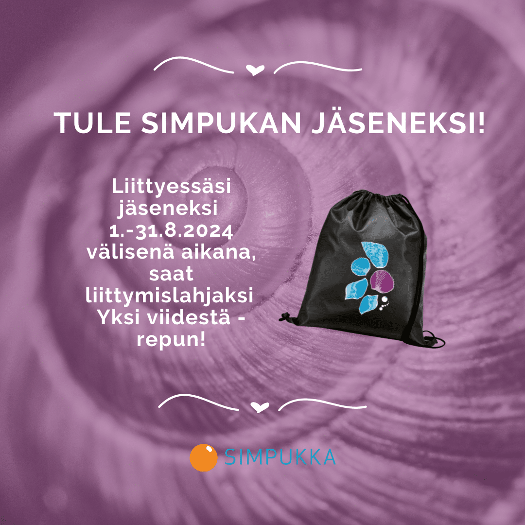 Liity jäseneksi! Simpukan jäsenenä tuet vaikuttamistyötämme ja mahdollistat tarjoamamme monipuolisen vertaistuen ja toimintamme jatkumisen tulevaisuudessakin!