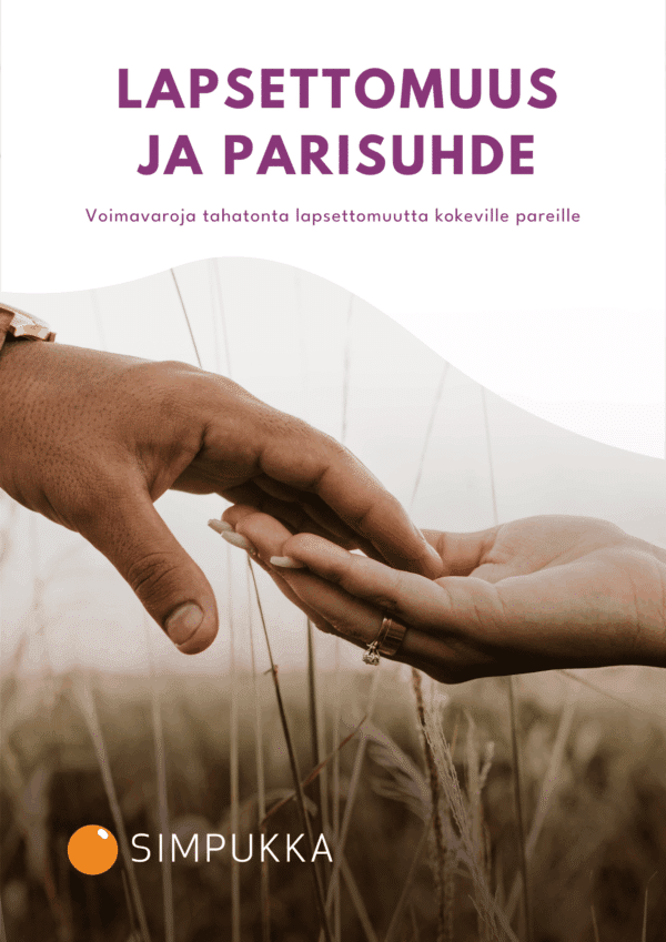 Olemme koonneet näihin kansiin SimpukkaParit-parisuhdetoiminnassa kerättyä tietoa ja kokemuksia lapsettomuuden vaikutuksista pari-suhteeseen. Toivomme, että opas auttaa sinua ymmärtämään paremmin omaa tilannettasi ja parisuhteesi tilaa. Tarjoamme työkaluja ja konk-reettisia harjoituksia voimavarojen lisäämiseen elämän aallokossa. Lisäksi kerromme, mistä voit tarvittaessa löytää tukea lapsettomuuden ja parisuhteen huolenaiheiden käsittelyyn.