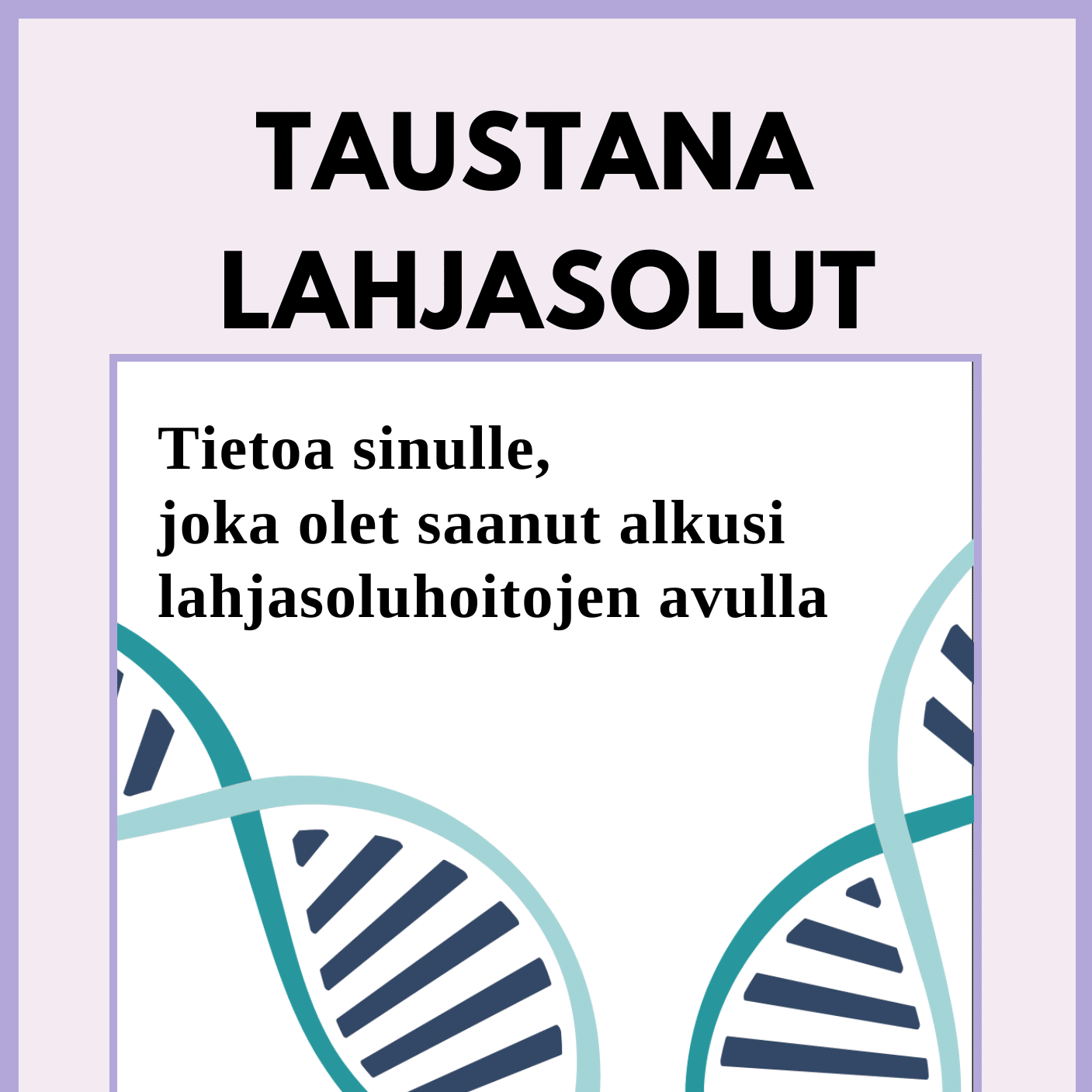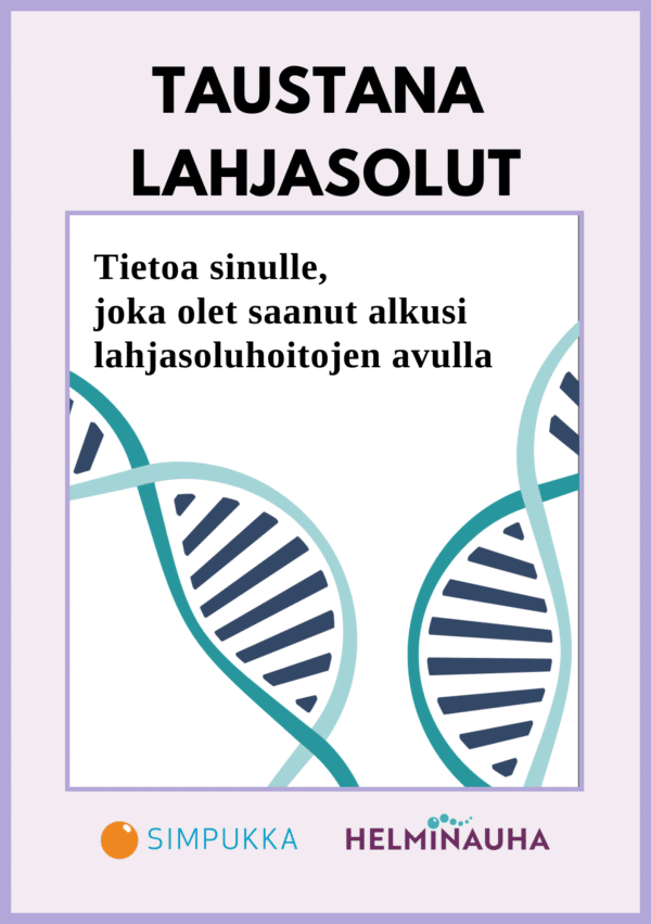 Taustana lahjasolut – Tietoa sinulle, joka olet saanut alkusi lahjasoluhoitojen avulla on tarkoitettu lahjasoluhoidoilla alkunsa saaneille henkilöille. Oppaaseen on koottu tiivistetysti tietoa lahjasolutaustaan liittyvistä teemoista, ja se voi toimia tukena lahjasolutaustaan liittyvien ajatusten ja tunteiden prosessoinnissa. Oppaassa kuvataan, keitä ovat lahjasoluhoidoilla alkunsa saaneet henkilöt, mitä ovat lahjasoluhoidot ja keitä ovat sukusolujen lahjoittajat. Oppaassa esitellään lahjasoluhoidoilla alkunsa saaneiden henkilöiden motiiveja selvittää lahjoittajan henkilöllisyys, miksi se on joillekin lahjasolutaustaisille merkityksellistä ja mitä tunteita lahjasolutausta voi herättää.